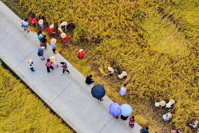 据悉,金秋9月,双流的4.58万亩水稻采用高标准农田,全程机械化操作,迎来一个丰收季。与以往不同的是,丰收之际,农田里多了不少城里娃,一个个新的消费场景也在农田周围铺散开。