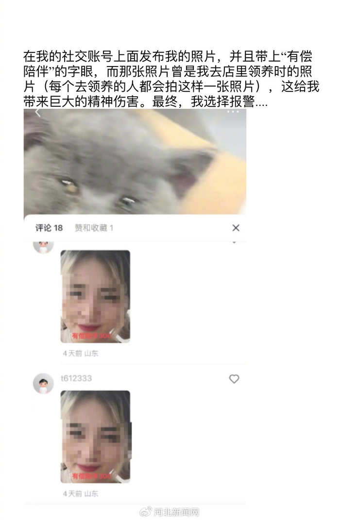 领养人王倩告诉顶端新闻记者,领养时,重庆妙趣多会以保障被领养动物的安全为由,获取领养人的个人信息,“在我们对重庆妙趣多提出质疑或拒绝继续付钱后,我们发现,之前领养时所照照片被恶意P图,放在交友网站;半年内,经常接到很多骚扰电话,还有陌生男子发信息约着见面。”