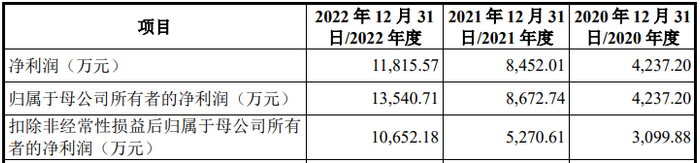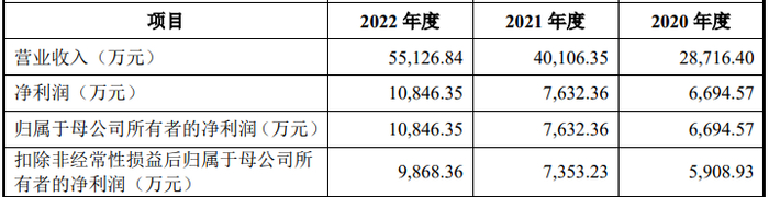 报告期内,公司营业收入分别为28,716.40万元、40,106.35万元、55,126.84万元,实现净利润分别为6,694.57万元、7,632.36万元、10,846.35万元。