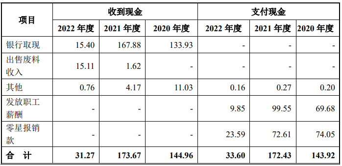 报告期内,公司现金收款主要系公司银行取现,现金支出主要系发放职工薪酬和报销零星费用,原因系: