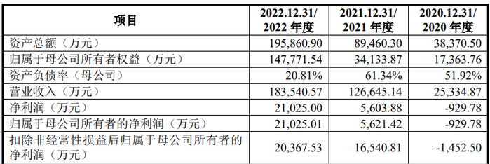报告期内,公司营业收入分别为25,334.87万元、126,645.14万元、183,540.57万元,实现净利润分别为-929.78万元、5,603.88万元、21,025.00万元。
