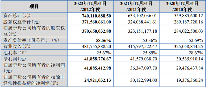报告期内,公司营业收入分别为325,058,844.25元、415,797,522.47元、481,755,888.20元,实现净利润分别为30,535,910.14元、41,579,038.70元、41,858,776.67元。
