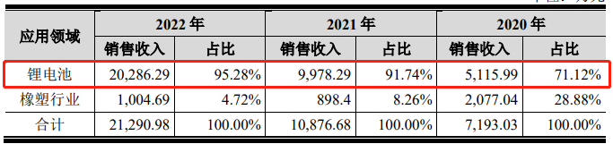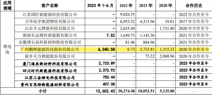 报告期内,公司前五大客户中锂电池领域的客户销售收入及占比呈现逐年升高的趋势,其中2021年前五大客户中锂电领域客户销售收入较2020年增加了4,862.30万元,增幅为95.04%;2022年前五大客户中锂电领域客户销售收入较2021年增加了10,308.00元,增幅为103.30%。