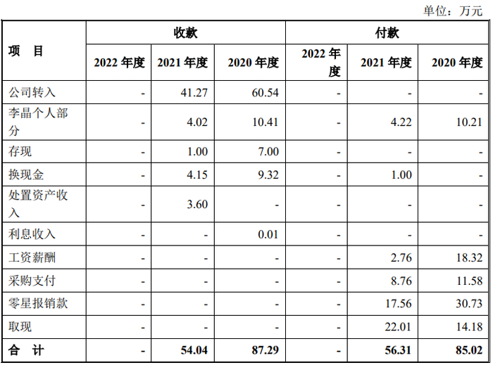 公司于2020年3月-2021年4月期间,存在通过出纳李晶之个人卡支付员工报销费用、发放职工薪酬的情形。原因系公司生产经营地周围银行分支机构较少,为提高支付效率并节约公司转账手续费导致。出纳李晶在公司提现时将部分资金直接转入其个人卡中,公司财务账面体现在库存现金余额之中。当公司业务人员报销零星款项时,公司通过李晶个人卡支付报销款,同时在账面减少库存现金余额。该个人卡支付款项均纳入公司账务体系核算,仅起到中间过渡转账作用。出纳李晶已于2021年4月从公司离职,自此,公司不再有通过个人卡付款情况。
