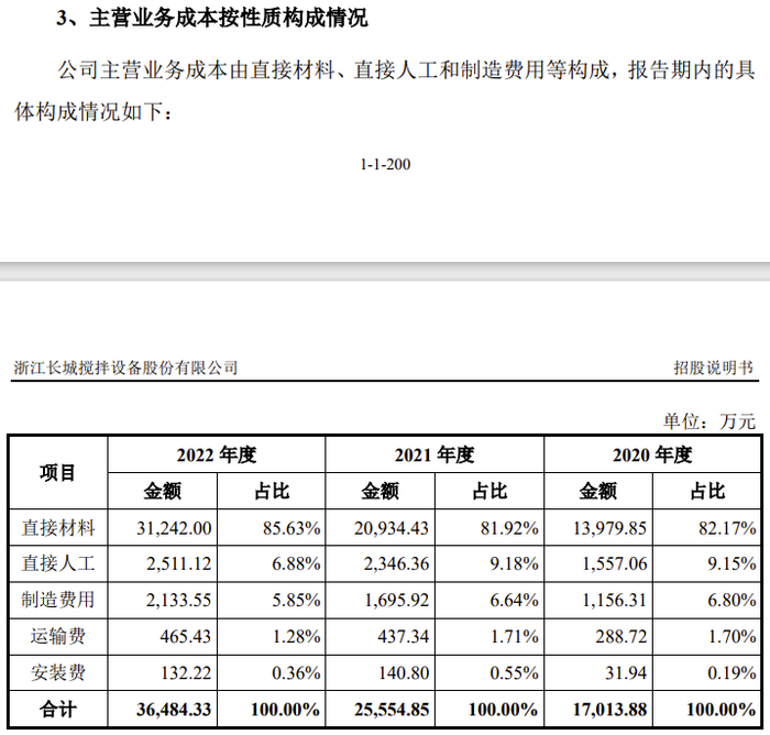 长城搅拌是一家专业从事搅拌设备研发、生产、销售和服务的高新技术企业,主要产品包括通用立式搅拌设备、特殊用途搅拌设备、模块化成套设备和搅拌设备零部件及配件。公司无控股股东,虞培清、金友香、鲁云光、金友发、施海滨、陈思奇和虞淑瑶为公司的共同实际控制人。前述七人合计持有公司90.47%的股份。一川企猛升为公司2022年第一大客户,且2022年末不是公司前五大应收账款客户。销售费用中推广服务费占比超过56%,持续上升,前五大推广服务商受到关注。主营业务毛利率持续下降。机器设备、运输设备、电子设备成新率很低。主营业务成本中直接材料占81%以上,产品技术含量较低。报告期内,公司营业收入分别为28,716.40万元、40,106.35万元、55,126.84万元。