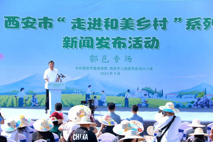 9月15日,西安市委宣传部、市政府新闻办在鄠邑区举行西安市“走进和美乡村”系列新闻发布活动。来自中央和省市多家媒体的记者走进乡村看变化、悟发展,深入感受鄠邑区建设和美乡村的幸福新面貌。