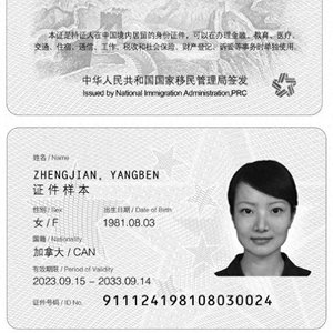 中国新版外国人永居证亮相