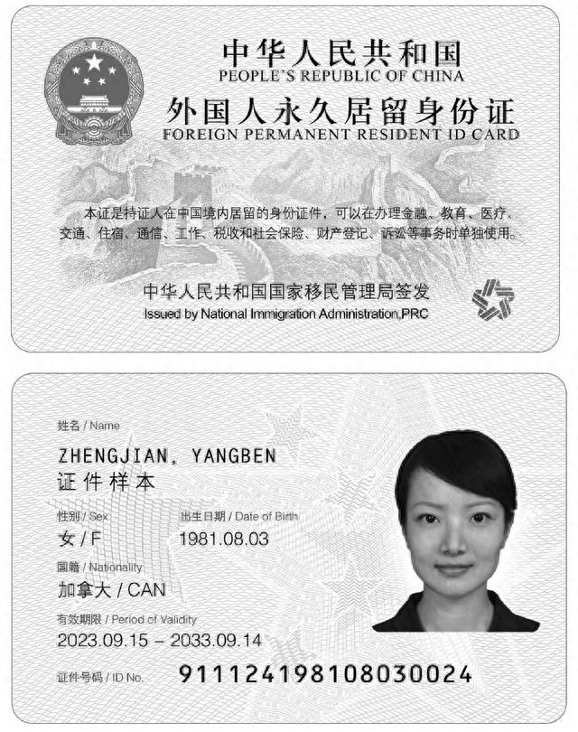 新版外国人永居证式样(国家移民管理局)