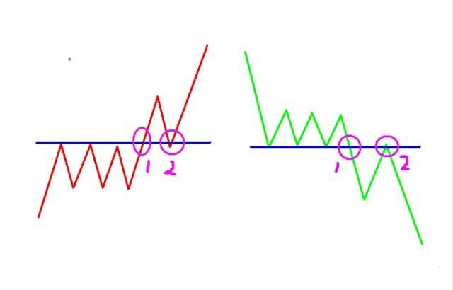 这里说的就是,上涨中,我们要找到横盘的时候,当横盘的高点突破时,我们要坚决入场,此时往往伴随着放量,会令你迅速远离建仓区,迅速获利。另外一种就是当价格突破以后,会寻找支撑,以获得更大的动能,我们可以在第二个入场点位入场,当你在第一个点位入场,价格涨幅很小,同时又下跌回试支撑的时候,你可以继续拿单,不要着急,因为后面的行情肯定是不会小的,不然行情不会去寻找支撑。如果错误了,你可以大胆的平仓,因为事实证明,这是一次错误的突破,大可不必过于懊恼,你的这次懊恼,意味着下一个真正的行情到来的时候,你不会吃到什么大利润。所以,绝对不要懊恼!