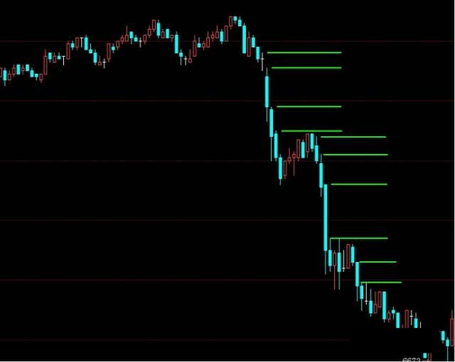 比如现在做空,价格下跌的速度比较快,那你就利用上一根K线的高点作为止盈点,当价格下跌速度放缓,就利用再上1根K线的高点作为止盈,这样不断的转换止盈的方式,针对价格波动的节奏,灵活变动(采用这样的方式主要是为了防止行情突然反方向大幅运行,另外,也是为了给行情下跌时的横盘调整,预留一个空间,这个大家在应用的时候一定要注意,不能设的过于紧贴价格,从而错失更多的盈利。也不可设的过于宽松,防止利润回吐,这个度需要大家多练习,灵活掌握。)