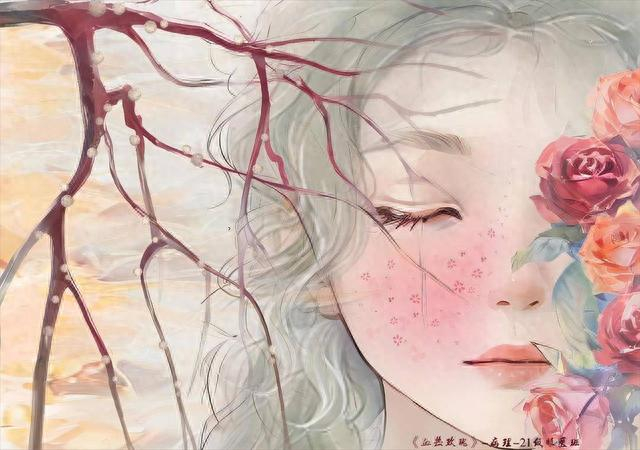 玫瑰痤疮是一种易发于面部的慢性炎症疾病,对在意颜值的男孩女孩们来说多少有些困扰。在病理学的绘画作品中,2021级眼视光医学专业的朱学贤同学的画展示了女孩脸上的红色斑点仿若一朵朵盛放的玫瑰花。画面左侧是延伸到女孩面部的毛细血管,向观众示意了玫瑰痤疮的发病机制:树枝状血管扩张充血,白细胞渗出产生炎症反应,如同火焰灼烧面部。画面右侧则体现了病理学特征:面部灼热泛红,出现阵发性潮红或持续性红斑。