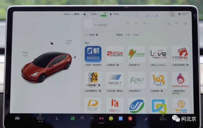 北京市民叶女士向“问北京”(北京新闻广播新闻热线65159063)反映,自己新购入一台特斯拉新能源轿车,她发现与自己此前驾驶的车辆不同,车上没有安装车载收音机,而是需要通过中控屏幕寻找“在线广播”模块来收听广播电台的直播节目。