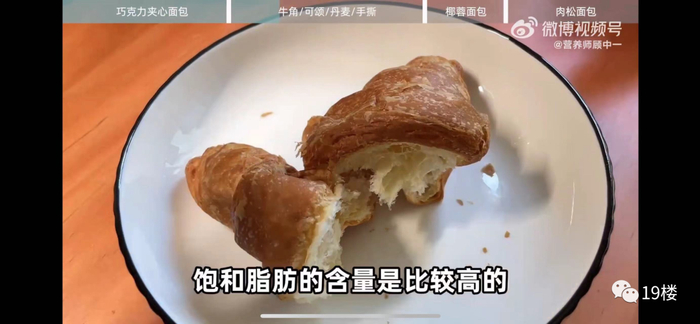 超市里的这类面包,品名一般叫牛角包、手撕面包、起酥面包、酥皮面包之类的,不过一般舍不得用黄油,而是植物油代替。为了让价格低廉的植物油也起到类似黄油的效果,大多需要经过氢化等工艺的处理,虽然现在厂家都很注意降低反式脂肪酸产生了,但成品也会包含大量饱和脂肪,还是不健康。