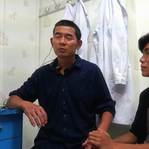 医生通过鼓掌进行测试殷徐紧盯着父亲的反应,当调试成功的一刻,父亲竖起了大拇指,“他的意思是能听见”,殷徐和母亲终于露出笑容。