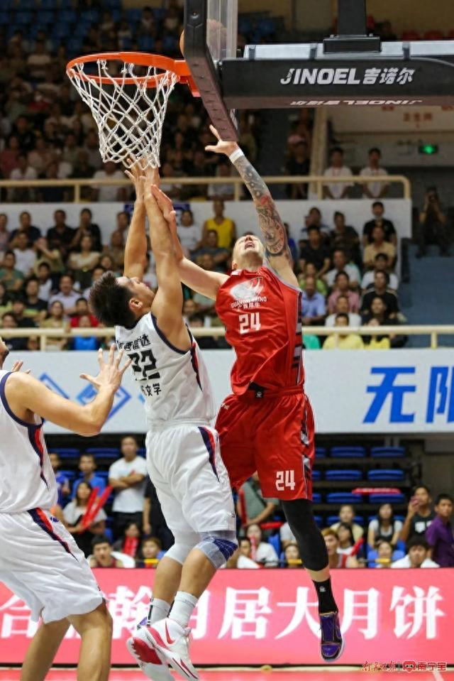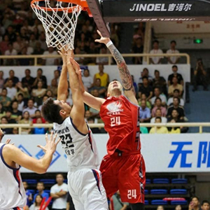 广西威壮外援在比赛中争抢篮板球