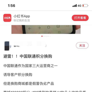 在网上,有相似经历的人不再少数。有的人下单买到的竟是高仿“小棕瓶”,有的人花费120000积分和199元兑换到了原价仅几十元的商品,随后果断选择自出邮费申请退货。在黑猫投诉平台,还有人网友以“中国联通的积分商城里面卖假货”为由将中国联通投诉上墙。