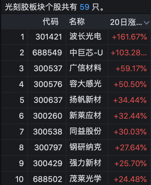 半导体炒作分支!光刻胶龙头一个月股价翻倍,相关产品营收占比超30%的A股上市公司名单一览
