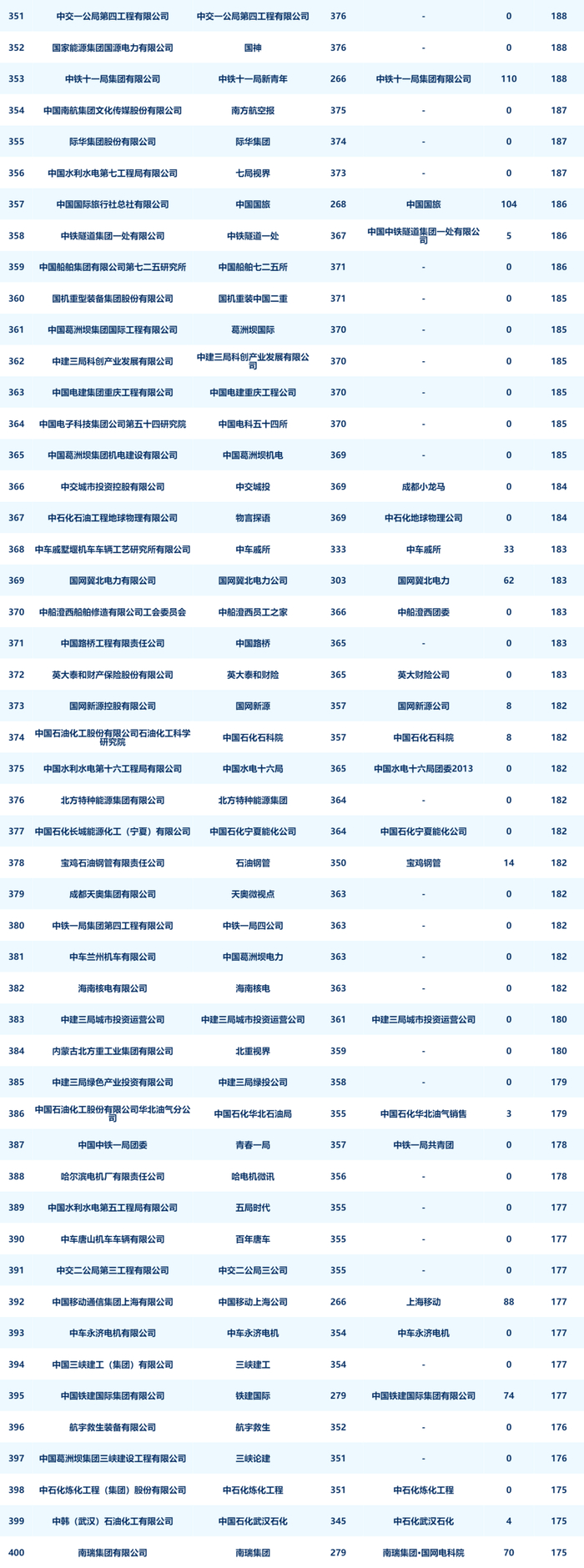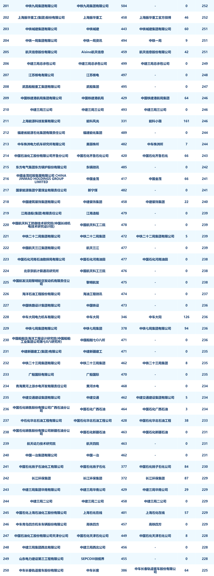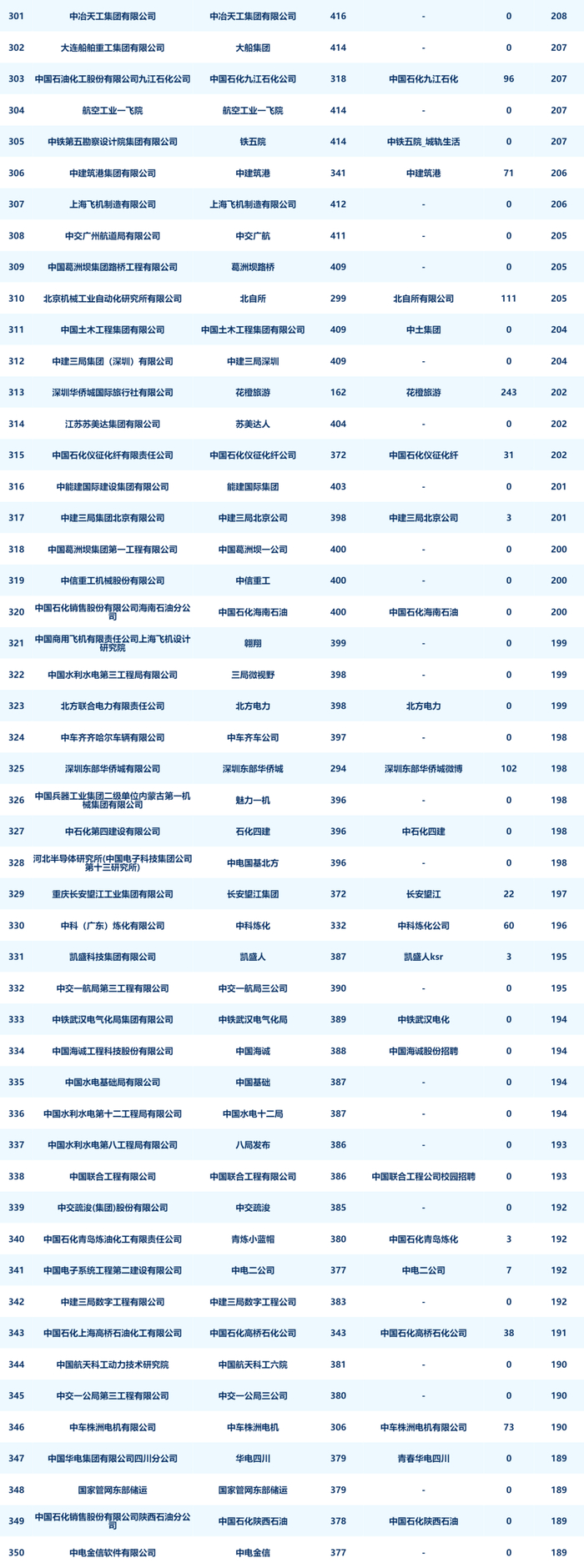 8月进入榜单前二十名的企业分别是:国网浙江省电力有限公司、国网江苏省电力有限公司、中国联合网络通信有限公司客户服务部、国网湖北省电力有限公司、国网安徽省电力有限公司、中国石油天然气股份有限公司润滑油分公司、中国建筑第八工程局有限公司、中建三局集团有限公司、国网山东省电力公司、成都天府华侨城实业发展有限公司欢乐谷旅游分公司、国网新疆电力有限公司、招商银行股份有限公司、中国石油天然气股份有限公司浙江销售分公司、中国建筑第二工程局有限公司、中移在线服务有限公司、重庆长安汽车股份有限公司、大庆油田有限责任公司、中国石油集团渤海钻探工程有限公司、国网河北省电力有限公司、中国石化胜利石油管理局有限公司