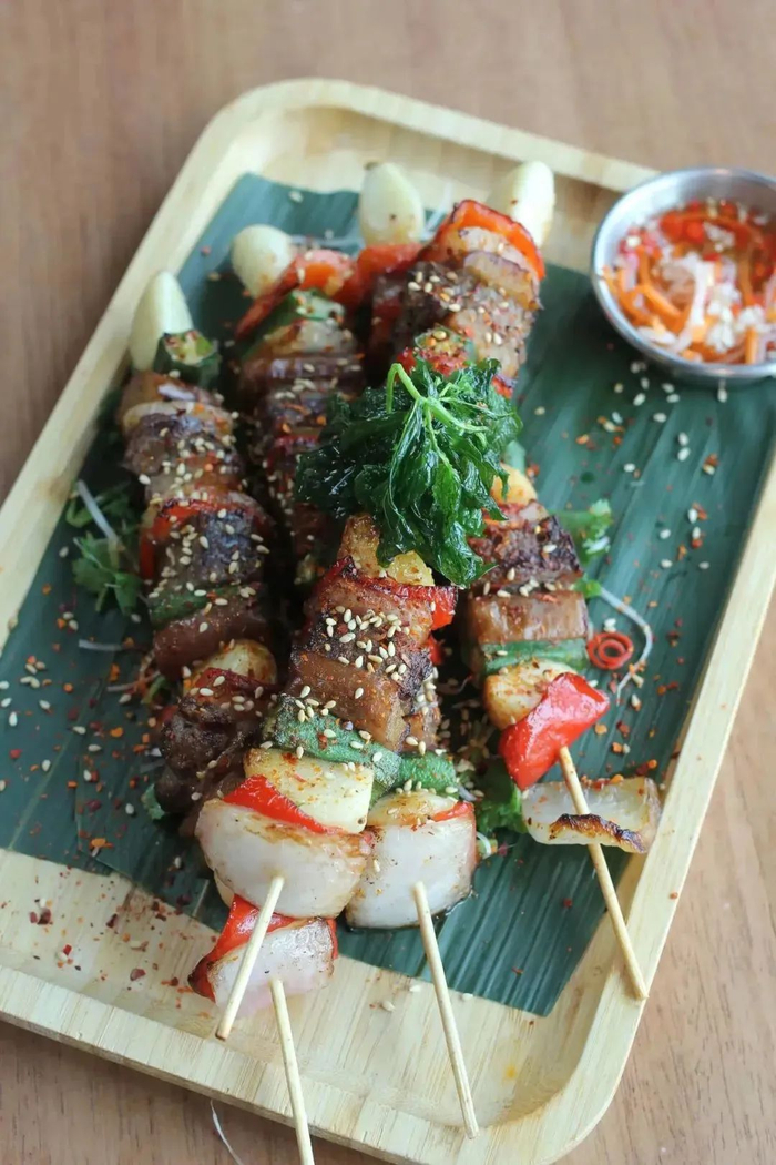 这次他们的必尝款包括经典猪肉虾仁春卷,越南著名的街边小吃,透明米纸皮包裹的猪颈肉和甜虾,配自制花生酱;折腾牛肉串,嫩煎的牛里脊肉串,配茄子、秋葵、自制酱汁等,多种越式风味等你解锁。