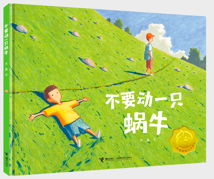 《不要动一只蜗牛》则是一本由蝴蝶效应延展开的原创绘本,作者大吴是《树王》《散步》的作者。与《散步》《露营》《游河》相似的是,故事发生在兄弟二人散步的过程中。弟弟把一只蜗牛拿到大石头的顶端,而蜗牛被鸟叼走,从而引发了一系列连锁事件。哥哥对弟弟关心的蜗牛视而不见,一心想去吃冰淇淋、看电影,实际上他不知道,弟弟的蜗牛与他的计划是否能完成息息相关。