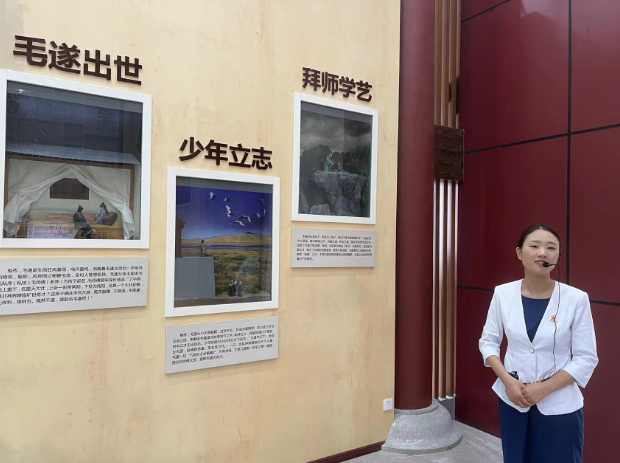 屏风后面,是3个立体画,分别是毛遂出世、少年立志、拜师学艺。