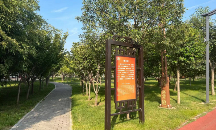 诗经文化园三个区域构思各有特色,国风文化景观区山林葱茏,湖水荡漾,广场开阔。迂回曲折的林荫小道,峰回路转的青色石板,将各个景点巧妙地连为一体,各种文化景石、地雕串于景区、点缀于园内,路从景中过,景在身边停,园林景观宛若天成。漫步公园,小路蜿蜒向前,草坪平顺柔美,紫叶李迎风摇曳,宛如紫云飞舞;龙爪屈曲盘旋,就像碧龙腾空;碧桃舒腰,枫杨刚直,银杏从容,木槿芳菲,公园内各种植物是竞放异彩,绽露芳容。