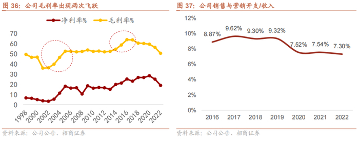 费用率稳健。近几年,公司的销售及营销费用率已经稳定在7%-9%的水平,并且稳中有降,因此净利率波动更多来自于毛利率的变化。