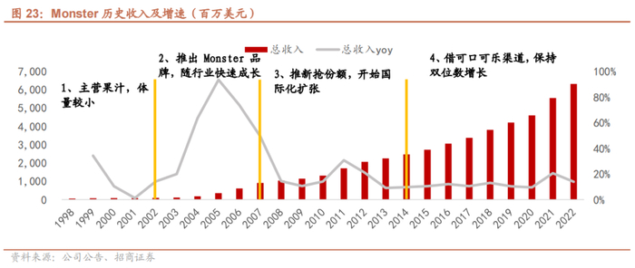 2)Monster:收购+海外驱动增长,利润率稳健修复