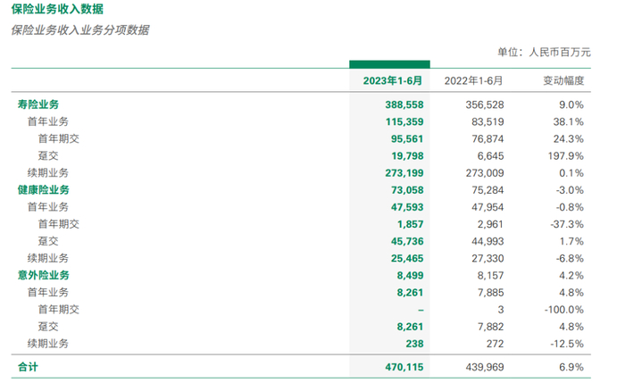 报告期内,中国人寿实现保费收入4,701.15亿元,同比上升6.9%,创历史同期新高,保费规模居行业首位,实现寿险业务总保费3,885.58亿元,同比上升9.0%;健康险业务总保费为730.58亿元,同比下降3.0%;意外险业务总保费为84.99亿元,同比上升4.2%。保险业务收入呈“两增一微降”的良好形势。