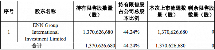 这是新奥股份三年前定增发行的股份,此次解禁仅涉及控股股东新奥集团国际投资有限公司(以下简称“新奥国际”)一家,其解禁收益率达88.16%,账面浮盈110亿元。不过,公告称, 公司通过发行股份及支付现金的方式购买新奥科技发展有限公司、新奥集团股份有限公司及新奥控股合计持有的新奥(舟山)液化天然气有限公司90%股权(以下简称“该次重组”)。该次重组已于2022年8月实施完成。新奥国际做出承诺,新奥国际及一致行动人在该次重组完成前持有的本公司股份,在该次重组完成后18个月内不转让。因此本次申请上市流通的股票在本次解除限售后,由于该次重组的影响仍不能转让。