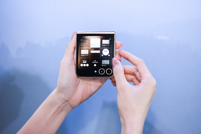 心系天下三星W24Flip的大视野智能外屏尺寸大幅提升,支持个性化外观定制,表达持有者的专属美学主张。高端时钟动效以无垠星河为主题,浩瀚无穷、深奥无尽,斗转星移间尽显W系列用户心系天下的情怀。通过功能丰富的小组件,可在外屏完成回复信息、拨打电话、查看天气、媒体控制、移动支付等功能。双指捏合,便可进入九宫格视图,点选不同的小组件,完成功能切换;将手掌覆盖机身,即可为来电或闹钟快速静音。