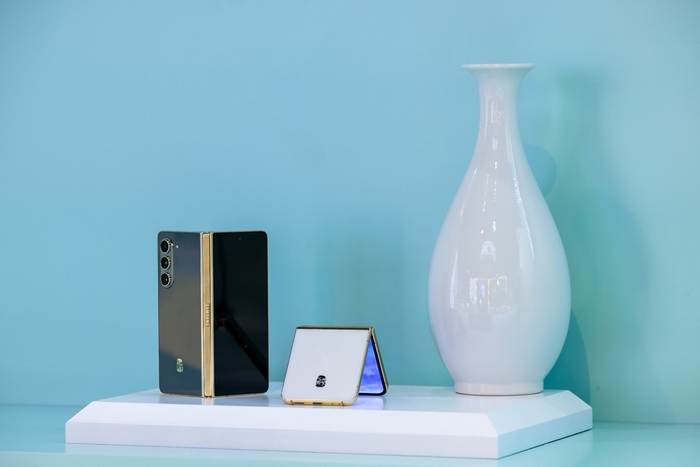 心系天下三星W24 Flip冰瓷白陶瓷背板兼具经久不衰的美学视效与工艺品级的温润触感,折叠状态下仿佛一枚珍贵宝盒,自然流露高贵雅致。采用奢华金配色的边框与铰链盖勾勒出机身轮廓,伴随持有者的举手投足呈现珠宝般流光婉转,闪耀夺目光华。