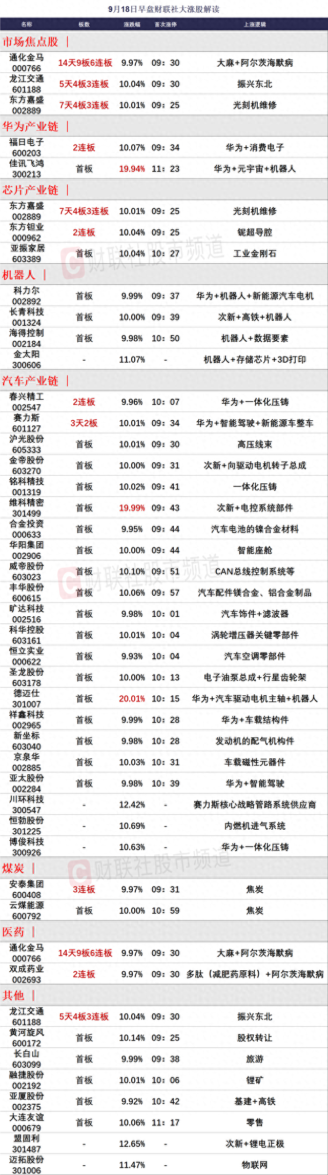 9月18日午间涨停分析