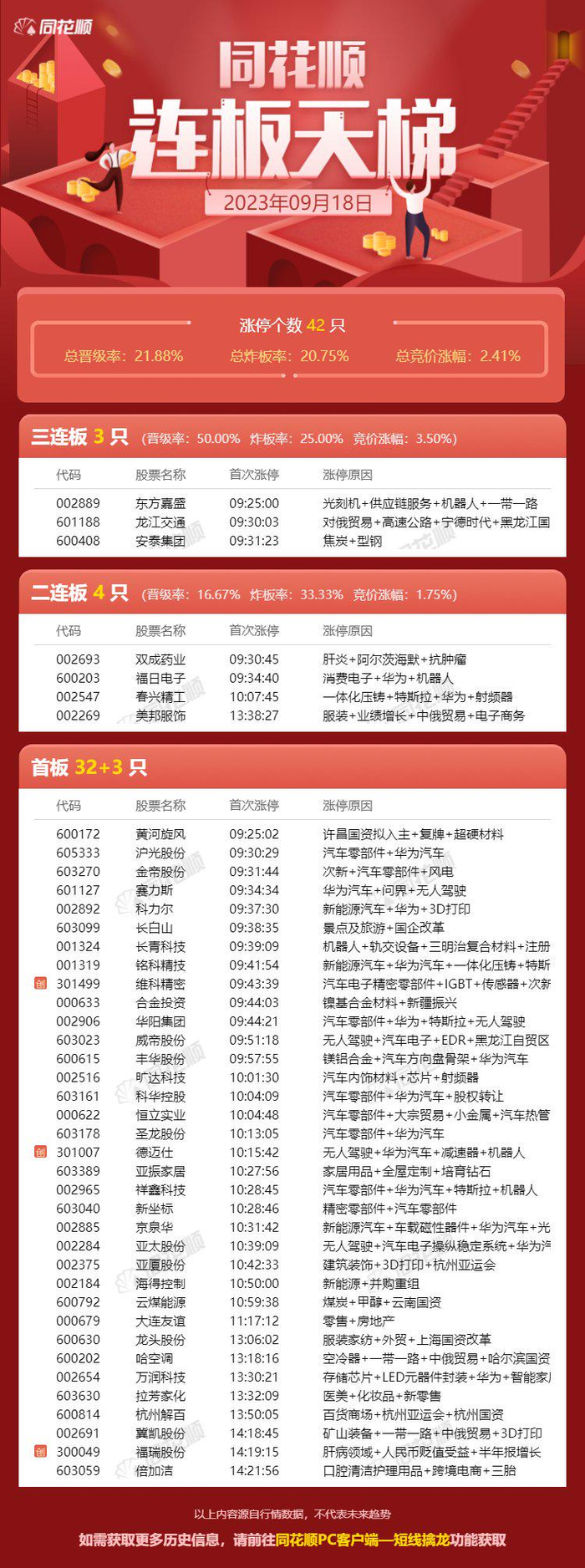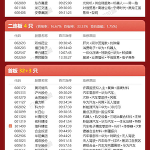 【连板天梯】汽车相关多股涨停,多概念持续轮动
