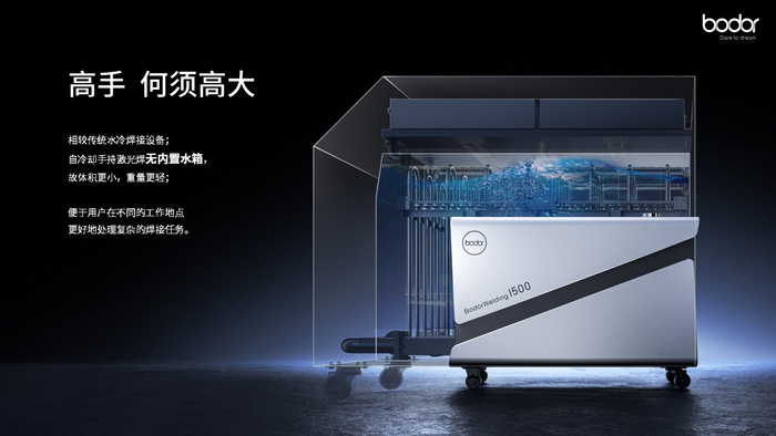 9月15日,邦德激光全球首发BodorWelder自冷却手持激光焊——全天候、自冷却、持续出光,真正颠覆了手持焊工艺和设备的痛点,在手持激光焊领域树立新标杆。