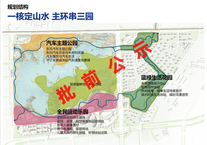 据了解,连山湖生态公园内的汽车主题公园主要涉及东风汽车历史与未来科技展、汽车露营与汽车生活、卡丁车赛道体验;全民运动乐园是全龄段运动游乐基地,包括足球、篮球等运动场地,老年人健身器材、青少年滑板等游乐场地;蓝绿生活花园涉及休闲健身、慢享生活场景、缤纷花港游赏等生活体验。