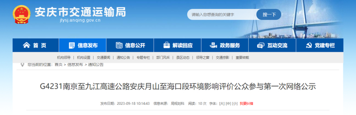 征求公众对G4231南京至九江高速公路安庆月山至海口段工程环境保护方面的意见。根据《环境影响评价公众参与办法》规定,涉及征地拆迁、财产、就业等与项目环评无关的意见或者诉求不属于项目环评公参内容。