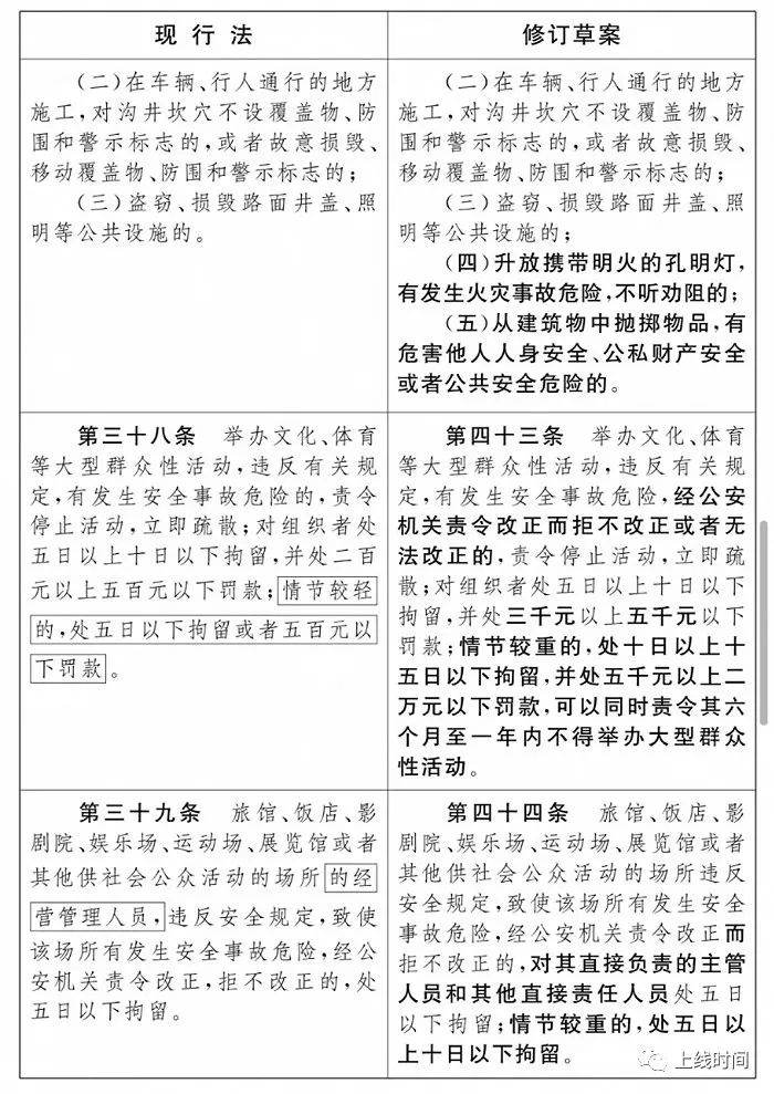 现行法与修订草案对比,加粗字体为新增内容。许多新增、修改的内容争议较大。