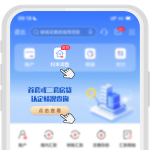 可在首页点击“利率调整”,也可点击首页广告页“首套或二套房贷认定情况查询”