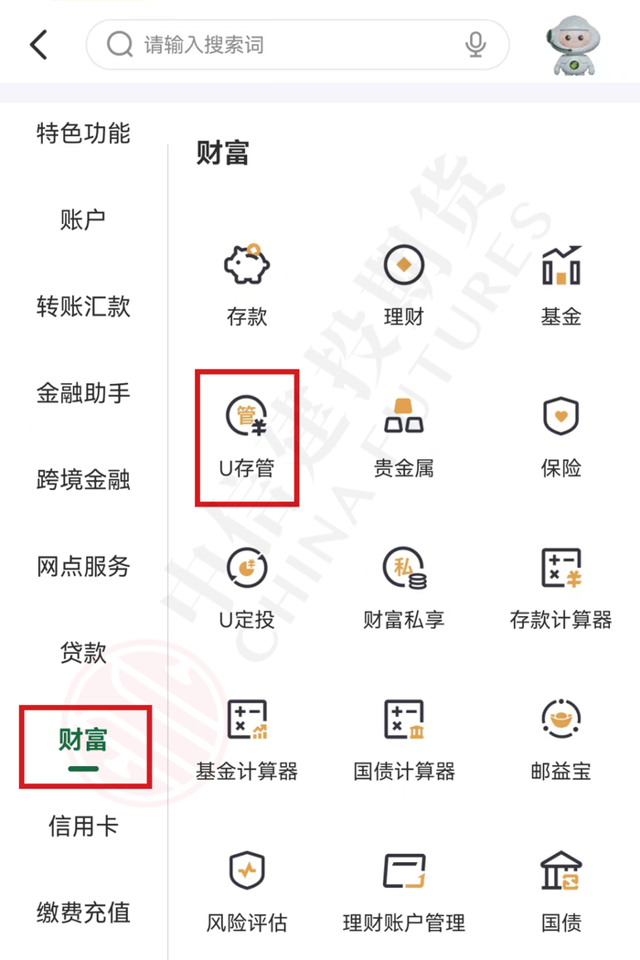 第二步:选择“财富”—“U存管”。