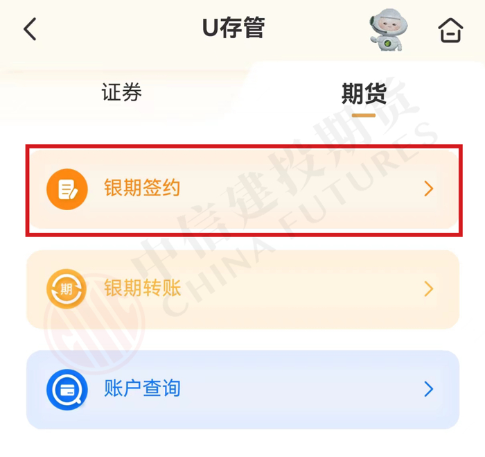 第三步:在该页面选择“期货”—“银期签约”