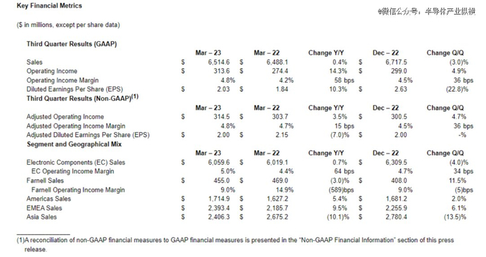 截至2023年4月,安富利销售额达到65亿美元,超过了公司指导范围上限,同时该季度营收为3.13亿美元,环比增长4.9%,同比增长14.3%。同时,安富利也是*一家逆势增长的分销商。