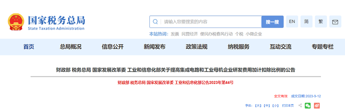财政部 税务总局 国家发展改革委 工业和信息化部公告2023年第44号