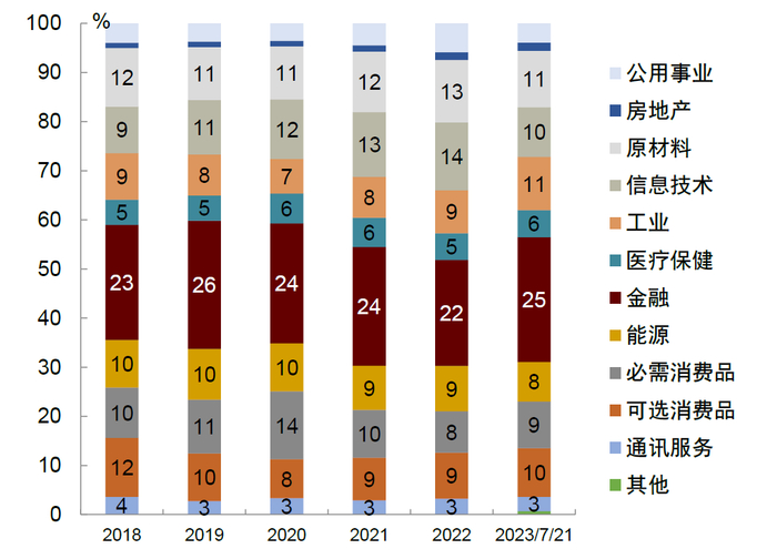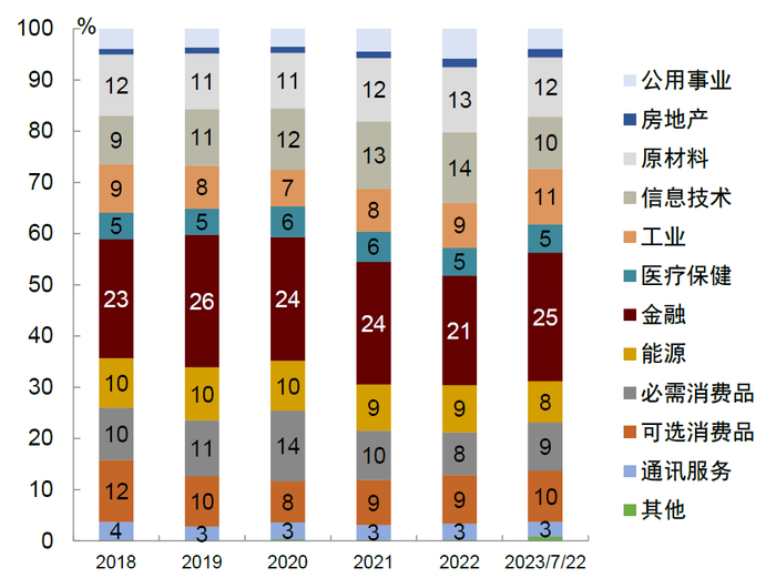 印度资本市场历史悠久,目前共有23家证券交易所,包括两大全国性交易所——孟买证券交易所和印度国家证券交易所。目前印度允许双重上市,从企业第一上市地选择来看,孟买证券交易所金融、材料、消费等传统行业占比较高,选在国家证券交易所的更多集中在高科技及新兴产业。由于国家交易所的上市费用普遍高于孟买交易所,很多中小企业和初创企业在孟买交易所上市。2023年7月,孟买交易所和国家交易所的活跃交易股票市值分别为3.8和3.7亿美元,市值前5大行业是金融、消费品(包括必选和可选)、原材料、工业、信息技术。