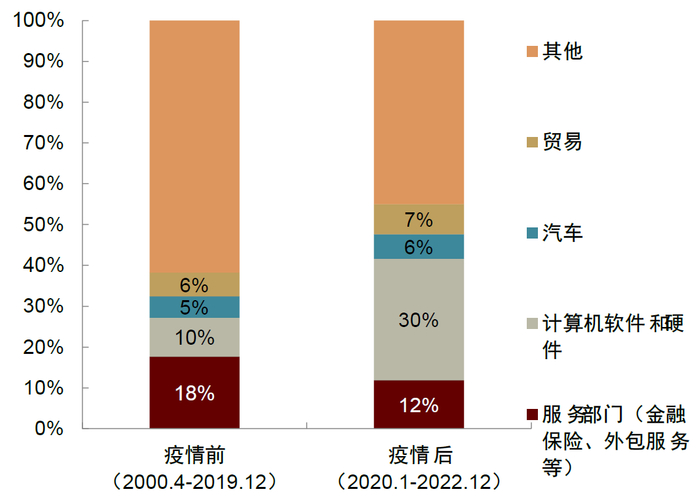 图表13:疫情前后印度吸收FDI流量行业结构对比
