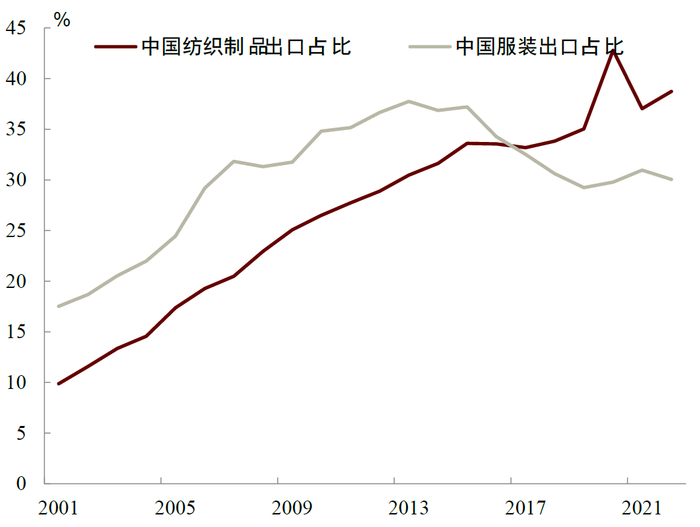 图表26:中国成衣出口份额下降、中间制品出口上升
