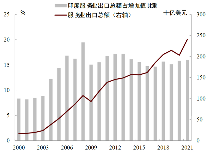 图表20:印度服务业蓬勃发展源自于海外市场需求