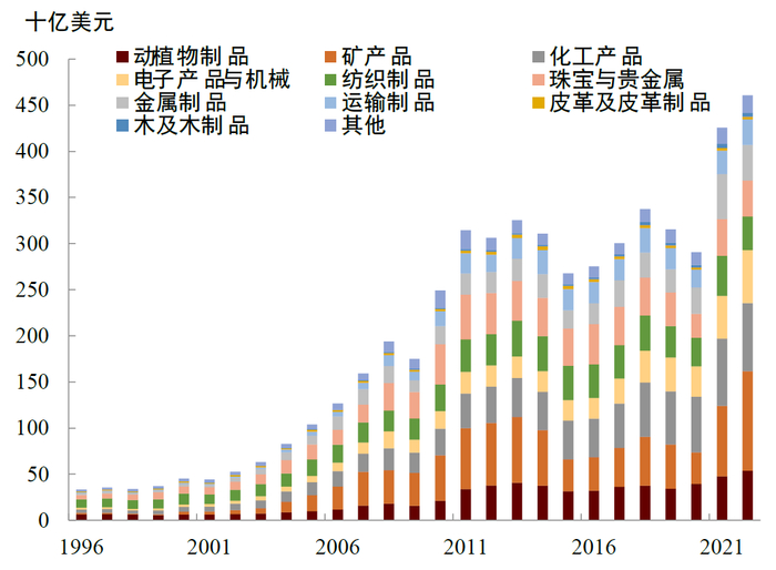 2020年以来印度制造业投资增速有比较明显的抬升,这部分得益于疫情期间印度额外推出很多产业性的补贴政策,另外投资手续简化也使治理方面的效率有所提升。从出口的产品结构上看,印度制造业出口目前大多为初级产品,电子与化工近年来有所增长。