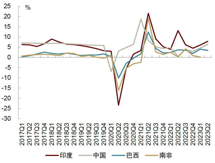 图表2:2023Q2印度GDP同比增速高于其他新兴市场国家