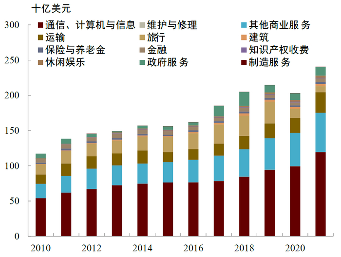 一般而言,服务很多是不可贸易品,印度的服务贸易为何能处于顺差状态?一个原因是过去十几年间,印度大力发展IT、教育和医疗等服务业。比较有名的是印度的信息技术(IT)行业。因为印度劳动力英语普及率高,很多西方企业将后台工作(比如话务中心)外包至印度,促进了其服务贸易的发展。此外,近几年来数字技术蓬勃发展,服务业可贸易性提高,为印度服务贸易发展提供了良好条件。